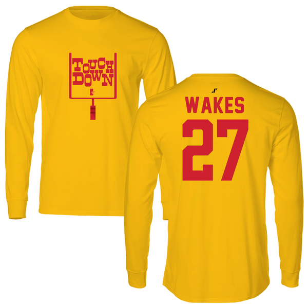 Pittsburg State University Football Gold Touchdown Long Sleeve - #27 Aabiyas Wakes