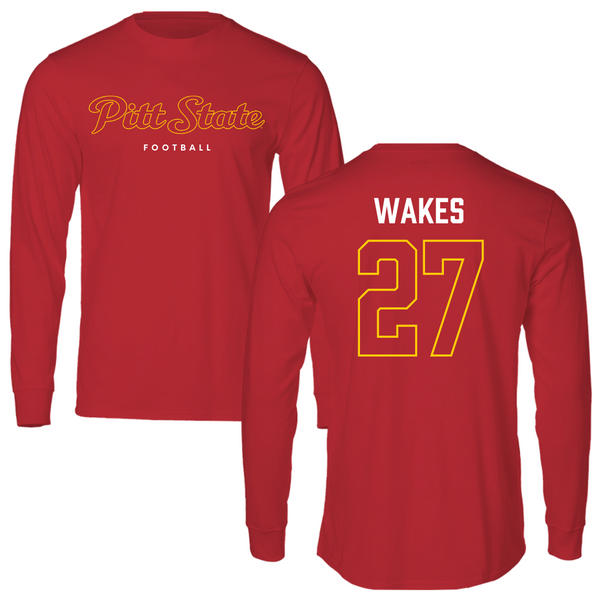 Pittsburg State University Football Red Long Sleeve - #27 Aabiyas Wakes