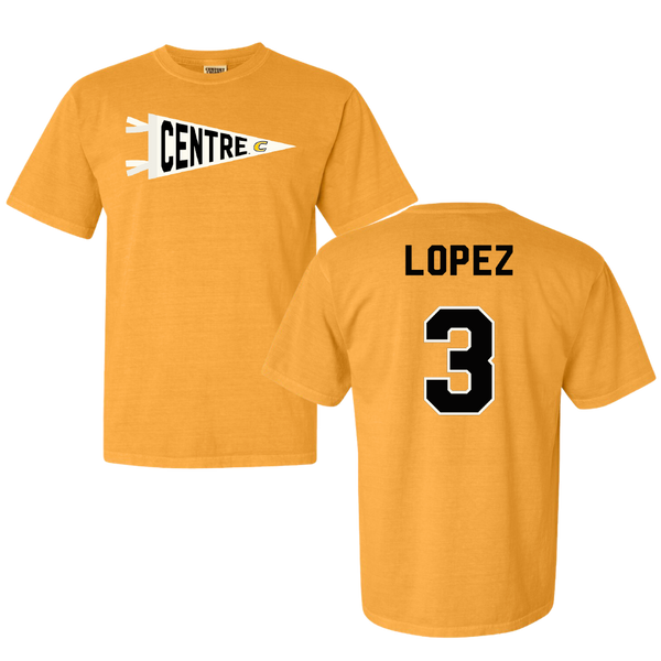 Centre College Baseball Gold Pennant Comfort Colors Tee - #3 Aaron Lopez