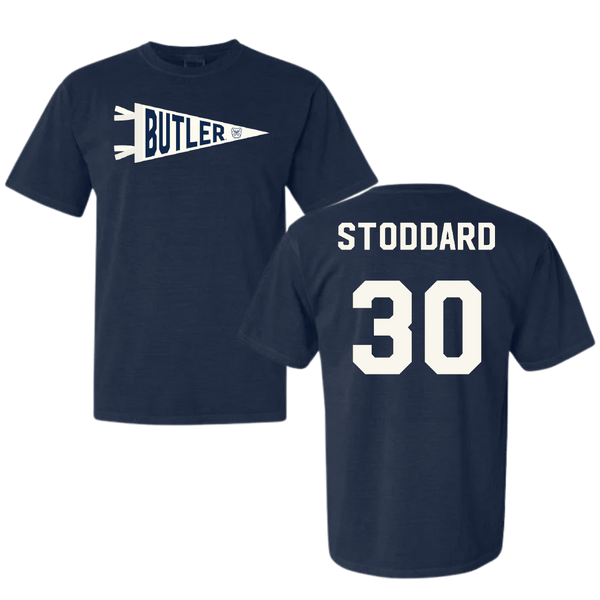 Butler University Basketball Navy Pennant Comfort Colors Tee - #30 Abigail Stoddard