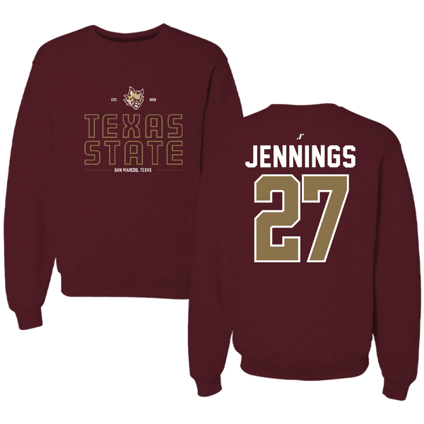 Texas State University Softball Maroon General Crewneck - #27 Abigail Jennings