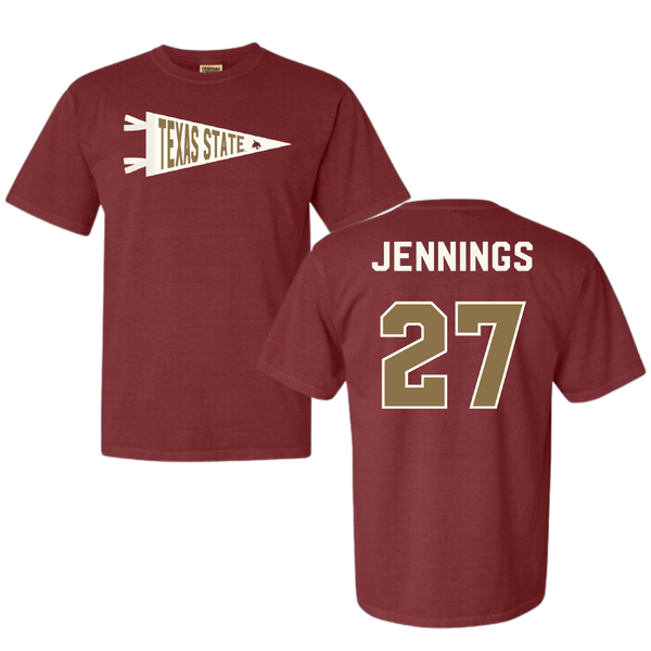 Texas State University Softball Maroon Pennant Comfort Colors Tee - #27 Abigail Jennings
