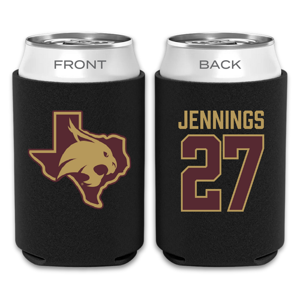 Texas State University Softball Black Can Cooler - #27 Abigail Jennings