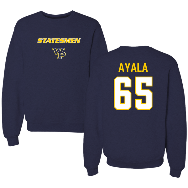 William Penn University Football Navy Crewneck - #65 Adrian Ayala