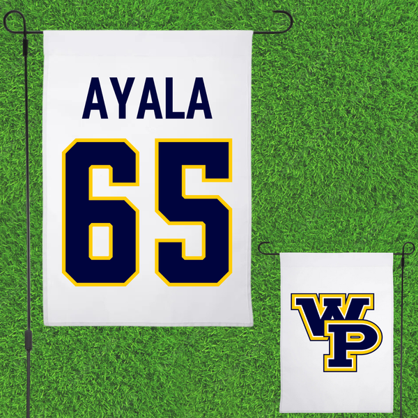 William Penn University Football White Garden Flag - #65 Adrian Ayala