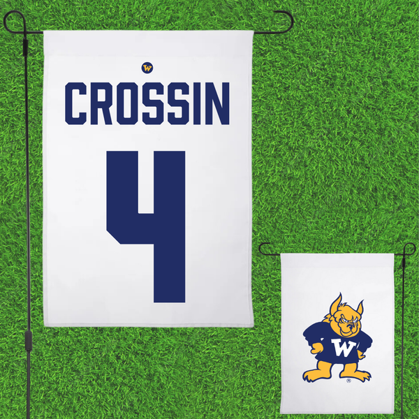 Webster University Basketball (M) White Garden Flag - #4 Aiden Crossin