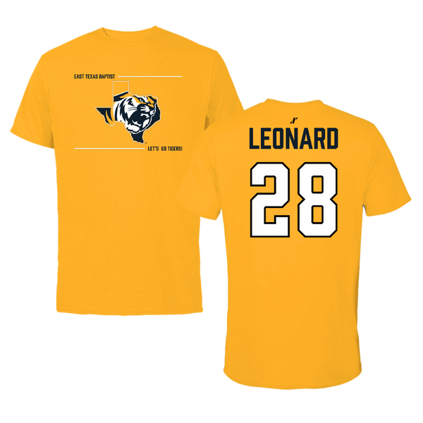 East Texas Baptist University Baseball Gold General Tee - #28 Aiden Leonard