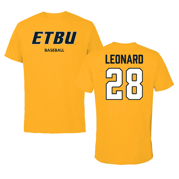East Texas Baptist University Baseball Gold Tee - #28 Aiden Leonard