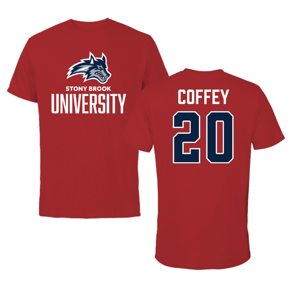 Stony Brook University Baseball Canvas Red Tee - #20 Aidyn Coffey