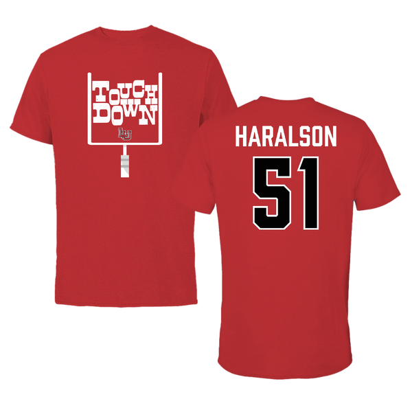 Lamar University Football Red Touchdown Tee - #51 Alex Haralson