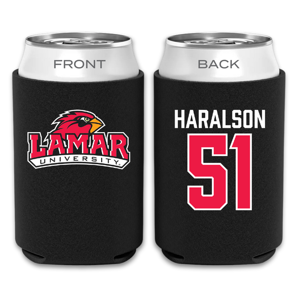 Lamar University Football Black Can Cooler - #51 Alex Haralson