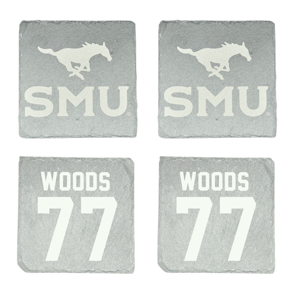 Southern Methodist University Football Stone Coaster (4 Pack) - #77 Alex Woods