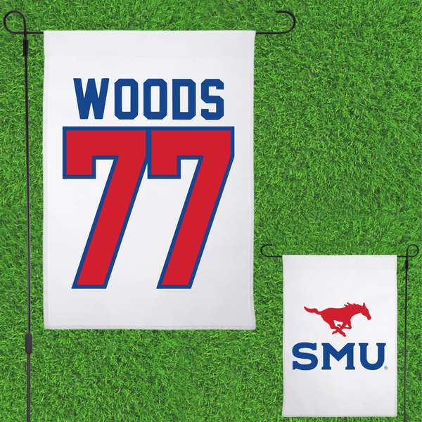 Southern Methodist University Football White Garden Flag - #77 Alex Woods