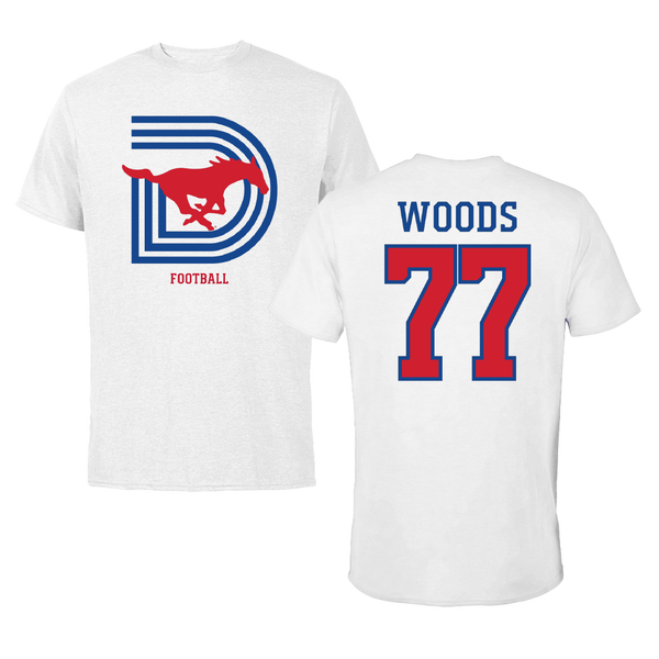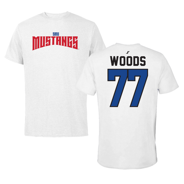 Southern Methodist University Football White Tee - #77 Alex Woods