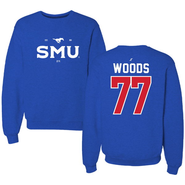 Southern Methodist University Football Blue General Crewneck - #77 Alex Woods