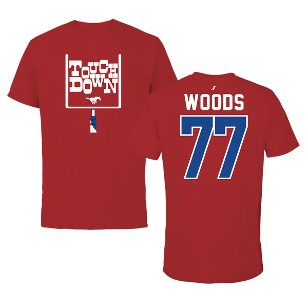 Southern Methodist University Football Canvas Red Touchdown Tee - #77 Alex Woods