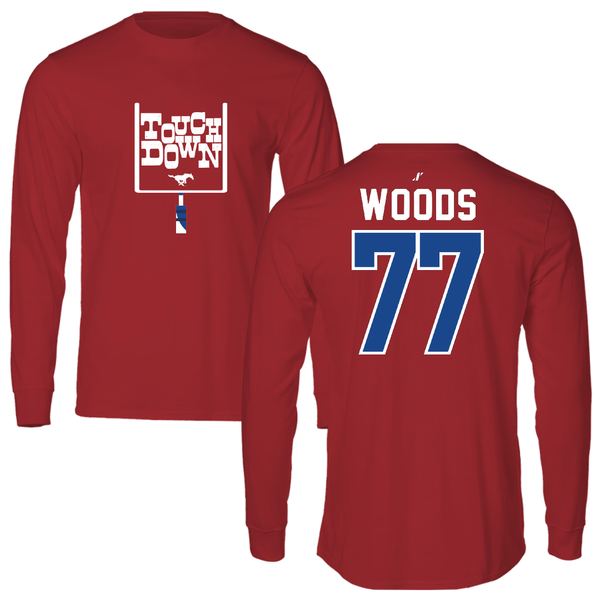 Southern Methodist University Football Canvas Red Touchdown Long Sleeve - #77 Alex Woods
