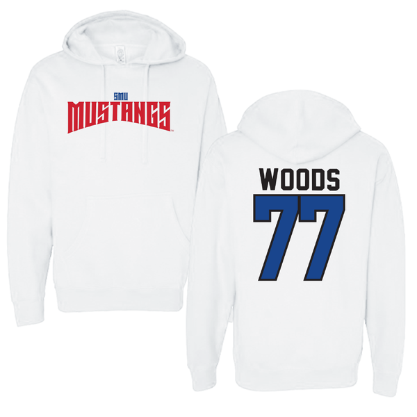 Southern Methodist University Football White Classic Hoodie - #77 Alex Woods