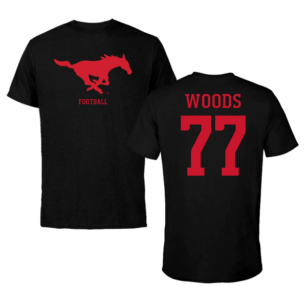 Southern Methodist University Football Black Tee - #77 Alex Woods