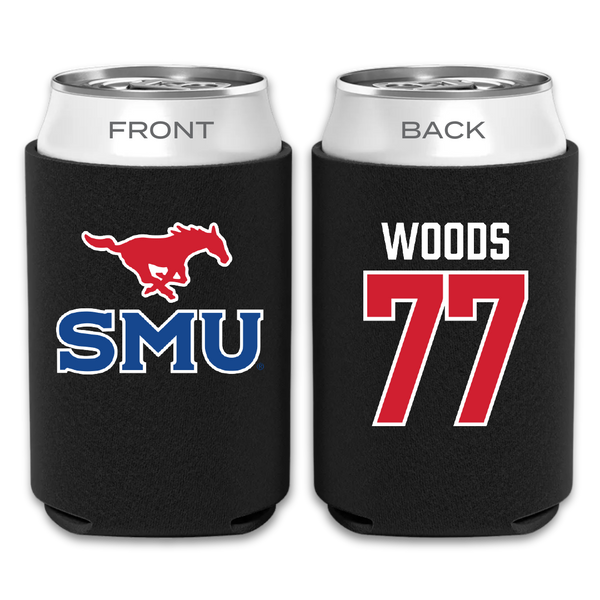 Southern Methodist University Football Black Can Cooler - #77 Alex Woods