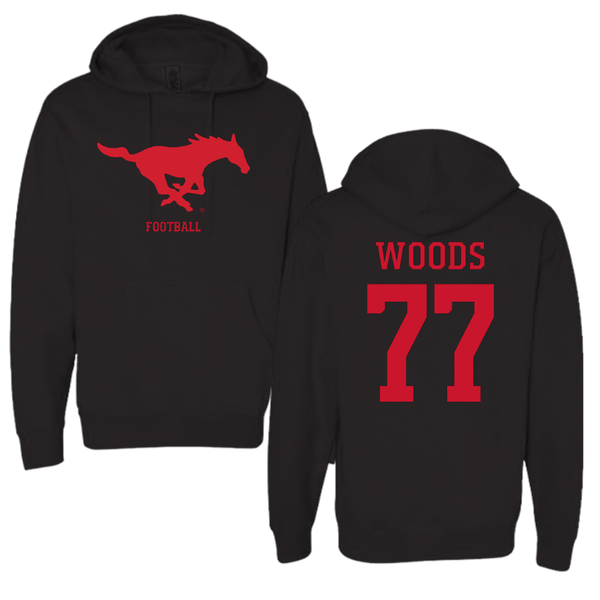 Southern Methodist University Football Black Mascot Hoodie - #77 Alex Woods