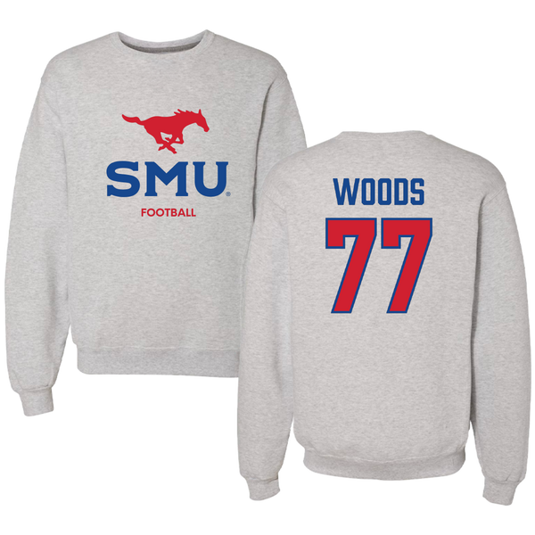 Southern Methodist University Football Light Gray Crewneck - #77 Alex Woods