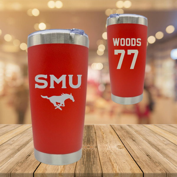 Southern Methodist University Football Red Stainless Steel Tumbler - #77 Alex Woods