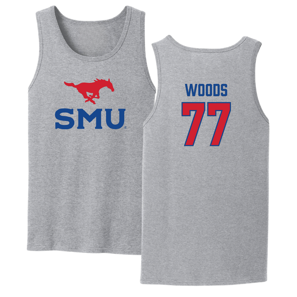 Southern Methodist University Football Sport Gray Tank Top - #77 Alex Woods