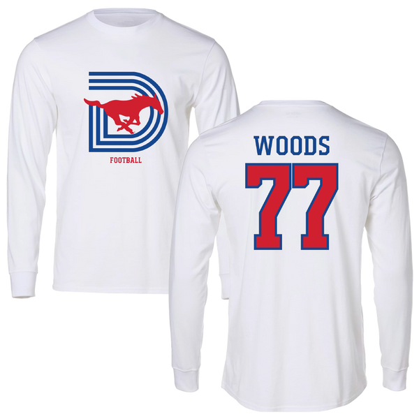 Southern Methodist University Football White Long Sleeve - #77 Alex Woods