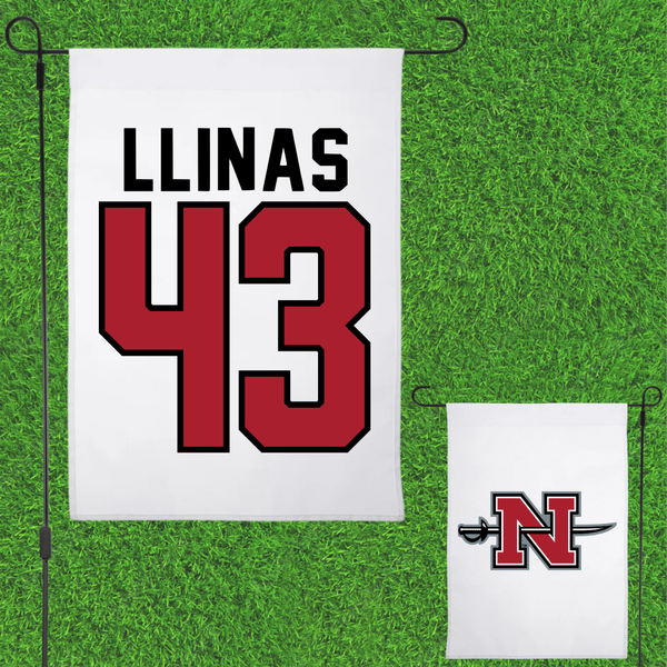 Nicholls State University Baseball White Garden Flag - #43 Alexander Llinas