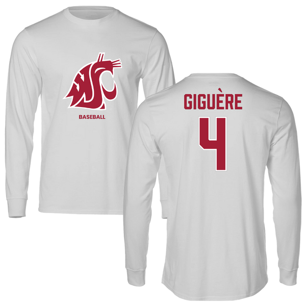 Washington State University Baseball White Classic Long Sleeve - #4 Alexandre Giguère