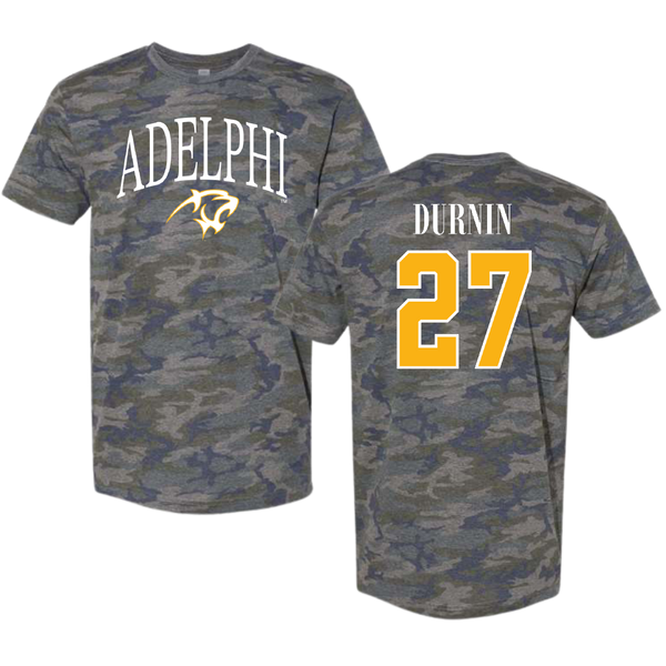 Adelphi University Lacrosse Vintage Camo Tee - #27 Ryan Durnin