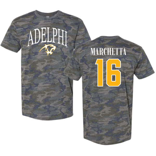 Adelphi University Lacrosse Vintage Camo Tee - #16 Madison Marchetta