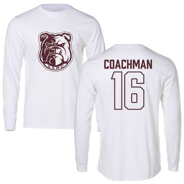 Alabama A&M University Volleyball White Performance Long Sleeve - #16 Kemora Coachman