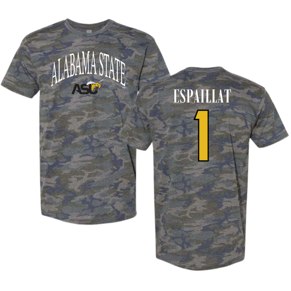 Alabama State University Baseball Vintage Camo Tee - #1 Alex Espaillat