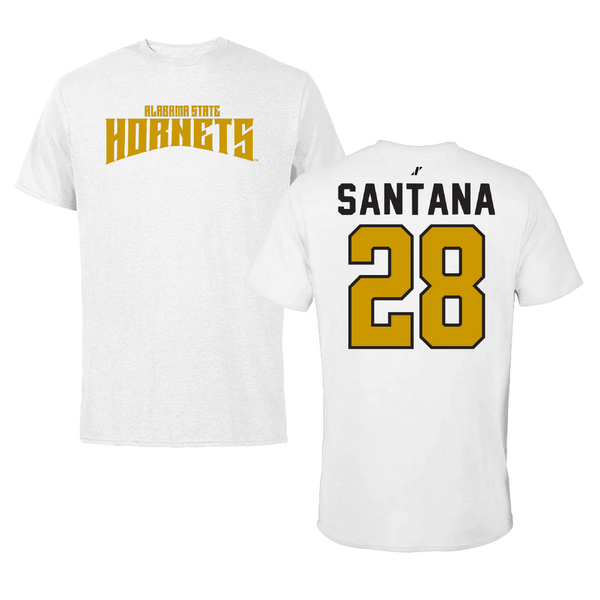 Alabama State University Baseball White Classic Performance Tee - #28 Fabian Santana