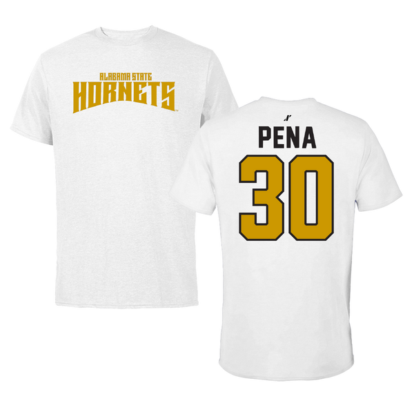 Alabama State University Baseball White Classic Tee - #30 Esaid Pena