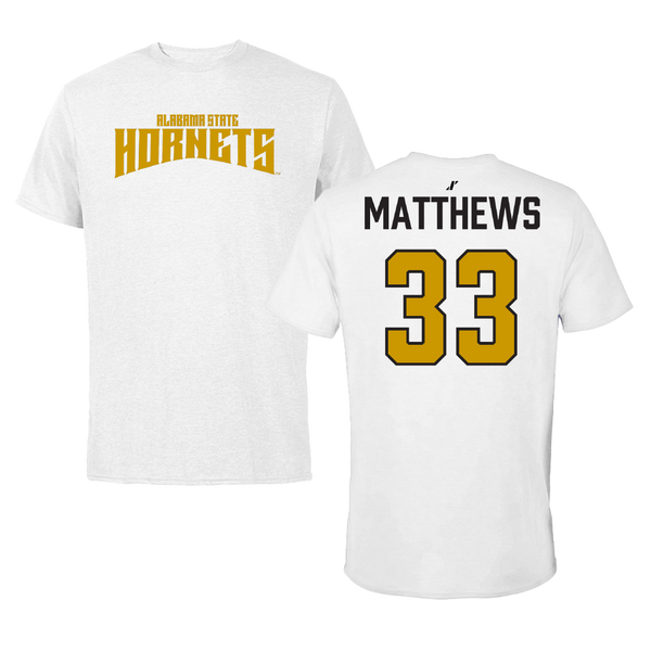 Alabama State University Baseball White Classic Tee - #33 Camden Matthews