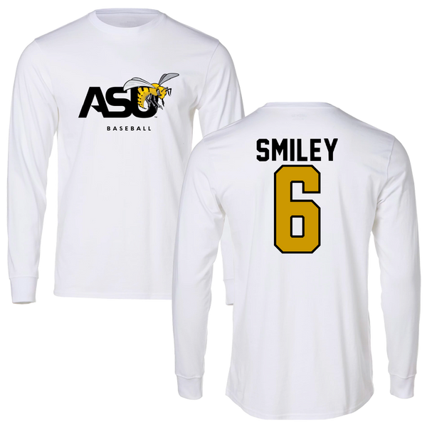 Alabama State University Baseball White Performance Long Sleeve - #6 Demarckus Smiley