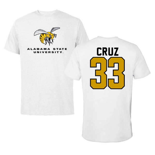Alabama State University Baseball White Performance Tee - #33 Juan Cruz