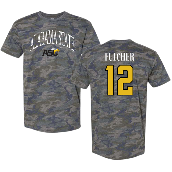 Alabama State University Basketball Vintage Camo Tee - #12 Shawn Fulcher
