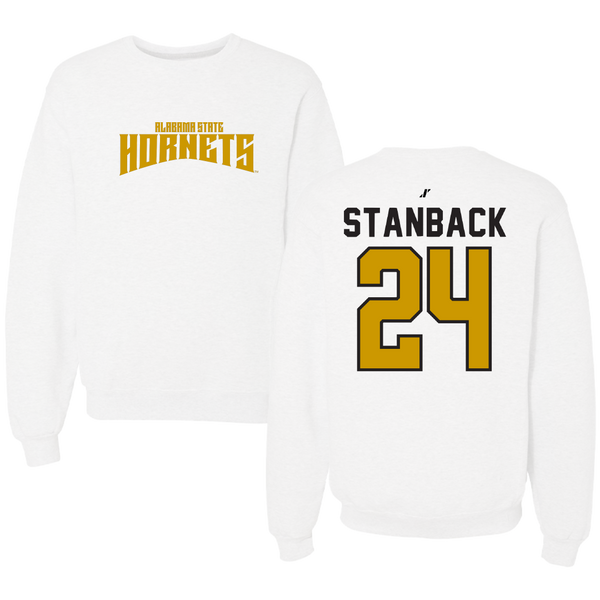 Alabama State University Basketball White Classic Crewneck - #24 Jerquarius Stanback