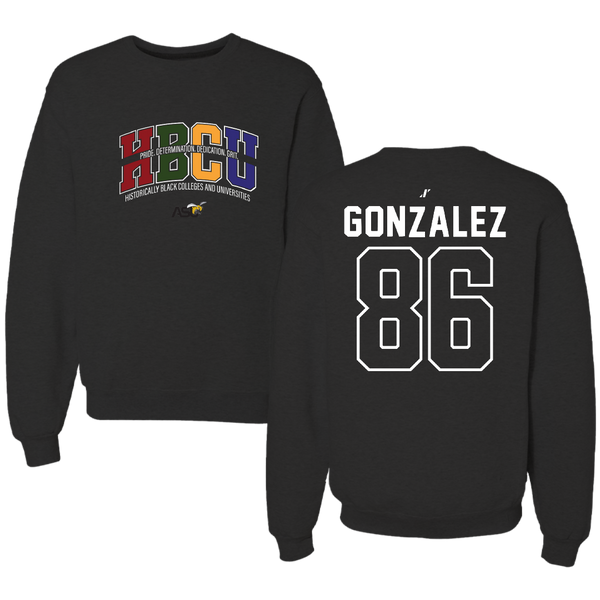 Alabama State University Football Black HBCU Crewneck - #86 Drake Gonzalez