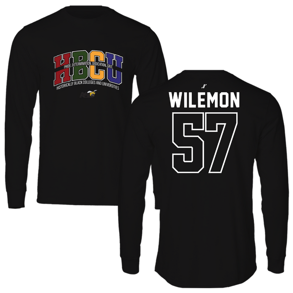 Alabama State University Football Black HBCU Performance Long Sleeve - #57 Garrett Wilemon