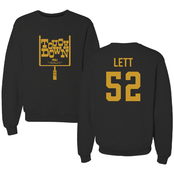 Alabama State University Football Black Touchdown Crewneck - #52 Trej Lett