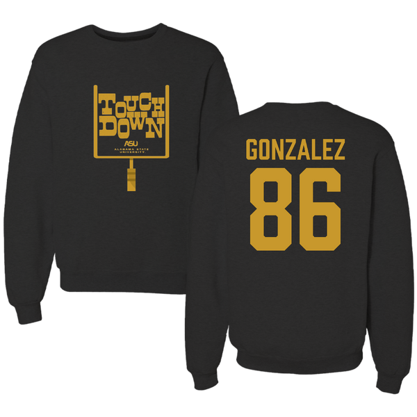 Alabama State University Football Black Touchdown Crewneck - #86 Drake Gonzalez