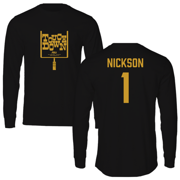 Alabama State University Football Black Touchdown Long Sleeve - #1 Willie Nickson
