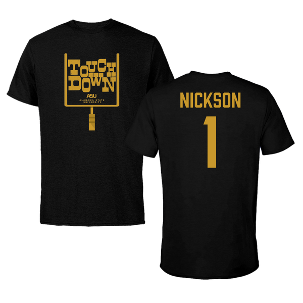 Alabama State University Football Black Touchdown Performance Tee - #1 Willie Nickson