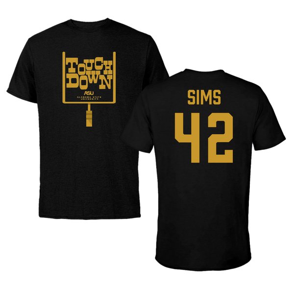 Alabama State University Football Black Touchdown Performance Tee - #42 Tashaun Sims