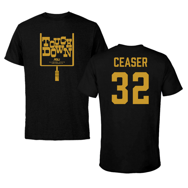 Alabama State University Football Black Touchdown Performance Tee - #32 Brennen Ceaser